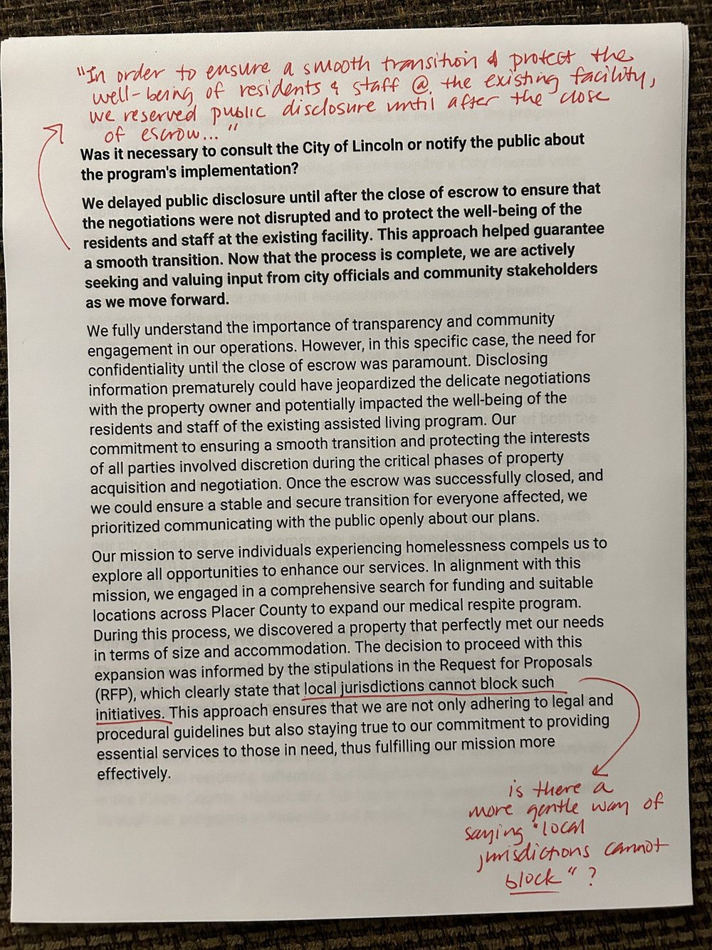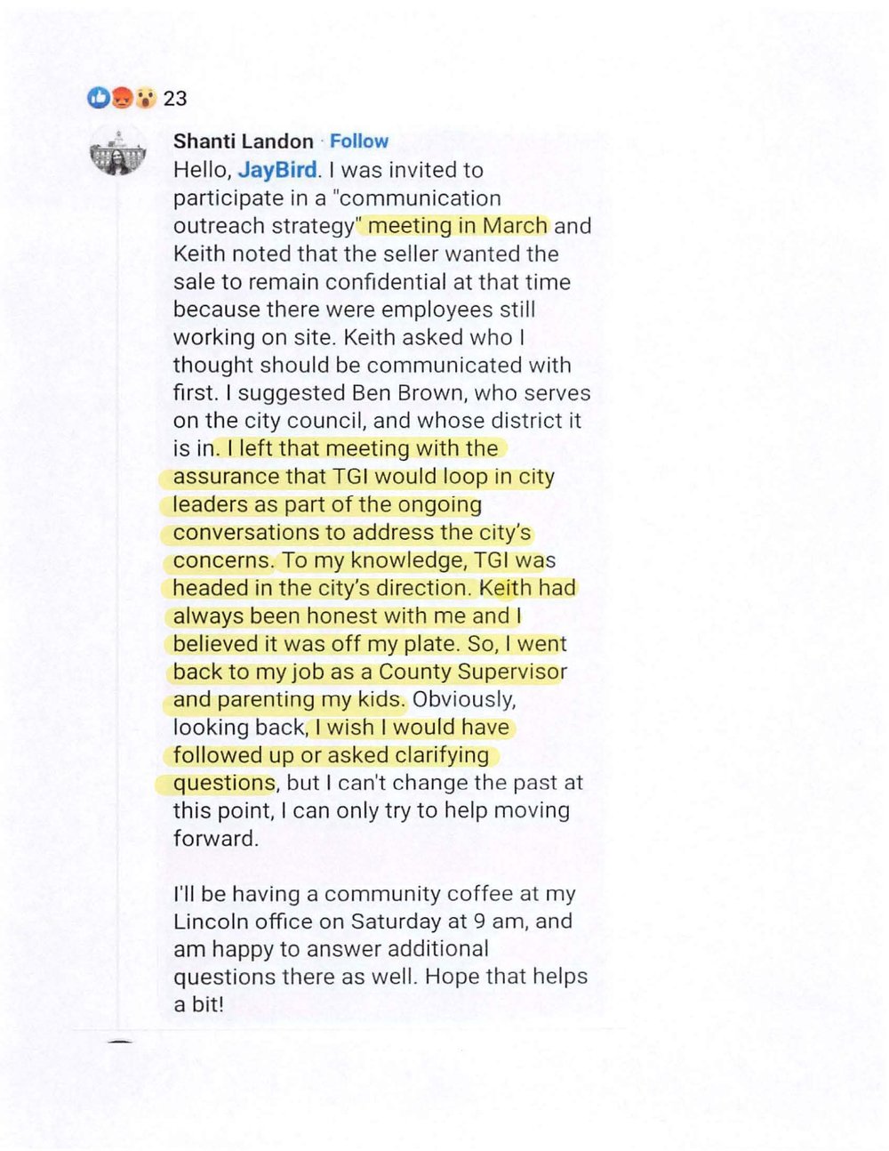 August 2024 — Supervisor Landon's Comment on "Lincoln Against TGI" Group