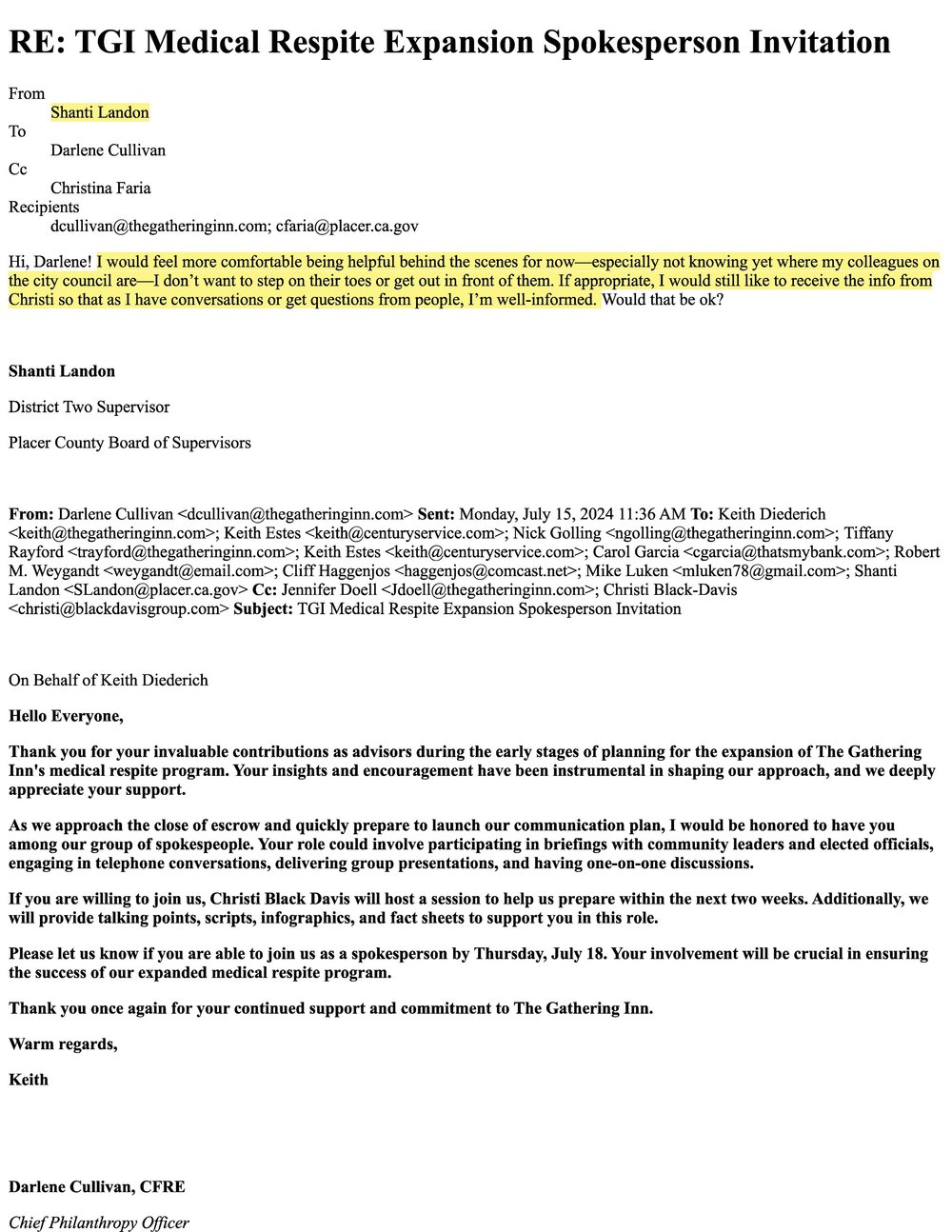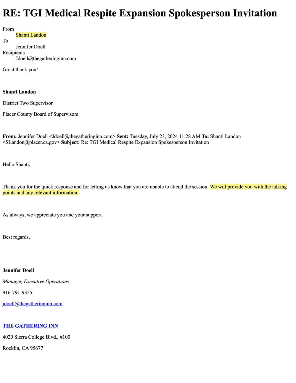 April 2024 — Supervisor Landon Provides Recommended Wording for TGI's Messaging Plan