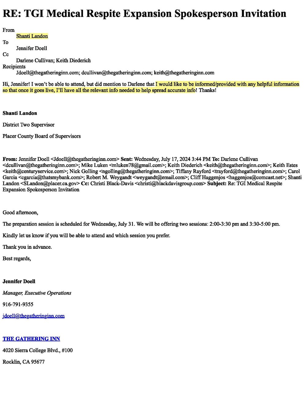 July 2024 — Supervisor Landon Asks for All Relevant Info